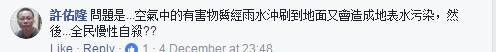 現(xiàn)在,重點來了,有臺灣網(wǎng)友質(zhì)疑,若真的可以實現(xiàn)“人造雨”的話,那雨水里融進(jìn)了空氣中如硫化物之類的有害物質(zhì),不就形成了“酸雨”,再降落到地面或農(nóng)田的話,不僅會造成地表水的污染,民眾吃下或喝下的也都是有害物質(zhì)啊,這不就相當(dāng)于全臺灣的民眾都在慢性自殺嗎?