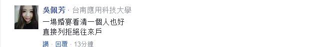 近日,臺灣一男子參加大學同學的喜宴,只包了1600元新臺幣的禮金也就罷了,事后竟還向新郎抱怨每桌破萬的喜宴菜色不好吃,這還不算完,之后他見新郎有意退還禮金,竟PO出了銀行的存折帳號……