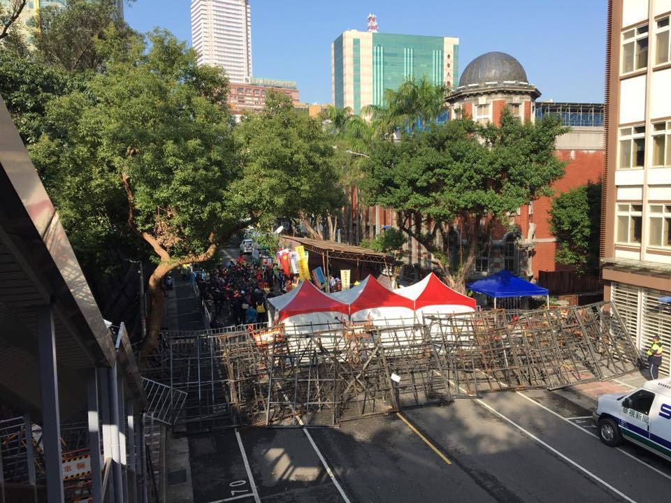 “立法院”臨時會今天三讀通過“勞基法”修正案,場外勞團持續抗議。(圖片來源:臺灣《聯合報》)