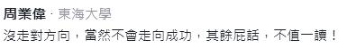 因此,蔡英文的言論遭到網友狠狠打臉:那為何還重啟核二?有種現在、立刻、馬上廢掉核一、核二;有新車不開,嫌40年老車危險,不會改用更新的核四?另外,賴清德都已經重啟核二了,蔡英文現在講這些,是不是突然想害死北部人?