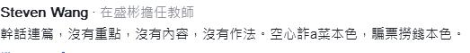 蔡英文此言一出即遭到臺灣網友痛批“自我安慰,阿Q想法,今年就是去不了,明年后年應該也去不了。”“文青讀稿機,再度發揮自慰精神。”“選一個敗家的來搞垮臺灣”“講的全是屁話!”