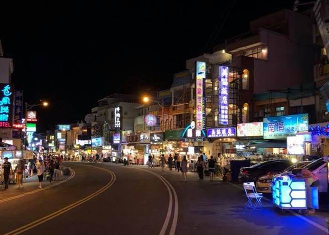 網友認為近日墾丁大街爆人潮是“幻覺”,貼出平常晚間街道照對比,顯得冷清許多。(圖片來源:“爆廢公社”)