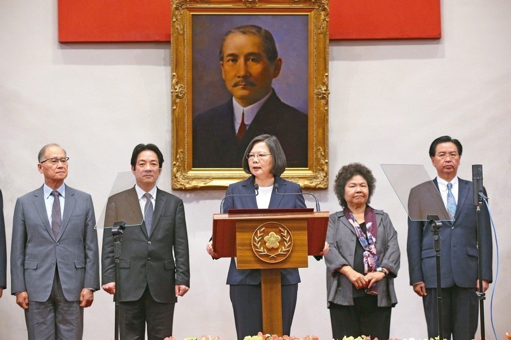 蔡英文率眾召開記者會。(圖片來源:臺灣《聯合報》)