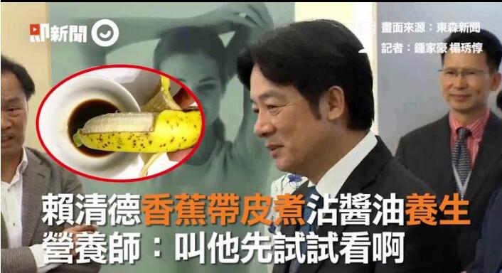 賴(lài)清德推“水煮香蕉帶皮沾醬油”新吃法。(圖片來(lái)源:臺(tái)灣“東森新聞云”)
