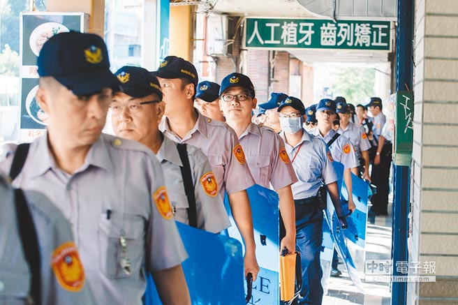圖為去年7月蔡英文在臺中市林酒店參訪時,警民對峙情形。(圖片來源:臺灣《聯合報》)