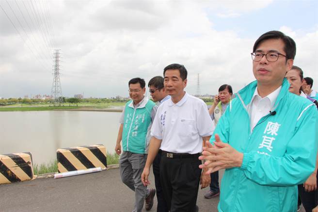 民進(jìn)黨高雄市長參選人、“立委”陳其邁(右)。(圖片來源:臺灣“中時電子報”)