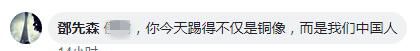 有網(wǎng)友留言表示:你今天踢的不僅是銅像,而是我們中國人!