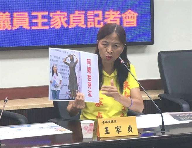 臺南市政府宣稱“臺獨”是主流民意,臺南市議員王家貞痛批制造市府假新聞。(圖片來源:臺灣“中時電子報”)