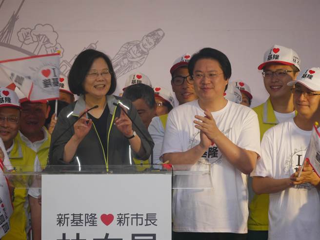蔡英文(左)今日上午出席基隆市長(zhǎng)林右昌競(jìng)選總部成立大會(huì),為林右昌(右)站臺(tái)。(圖片來源:臺(tái)灣“中時(shí)電子報(bào)”)
