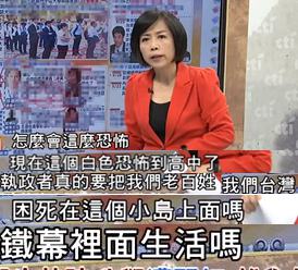 萬萬沒有想到,如今在民進黨執政的臺灣,“綠色勢力”、“白色恐怖”不僅席卷了如臺大一般的大學,更蔓延到了高中,知名政論節目主持人黃智賢為此驚呼“怎么會這么恐怖”!