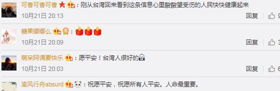 面對大陸網友的祈福、關心和呼喚,臺灣網友也表達了感謝與附議。