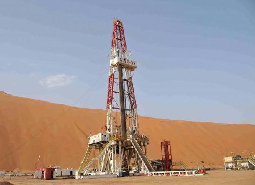 這是2015年8月14日拍攝的中國石化中原油田位于沙特阿拉伯沙漠腹地的一個石油鉆井平臺。新華社記者王波攝