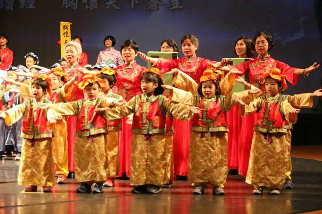 福智文教基金會的幼童演出“朗朗書聲心樂飄”,現場表演三字經。(圖片來源:臺灣“中國時報”)
