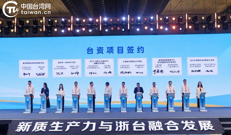 2024浙江·臺灣合作周開幕式上,現(xiàn)場簽約12個臺資項目,兩岸同胞正一步一個腳印把宏偉藍(lán)圖變成美好現(xiàn)實。(中國臺灣網(wǎng)發(fā))