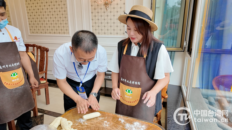 圖為蘭州牛肉面師傅現場教臺灣青年制作拉面。(中國臺灣網記者 李鑫 攝)