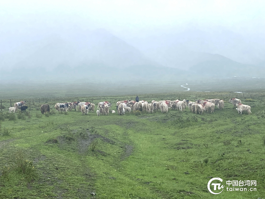 抓喜秀龍草原上,白牦牛悠閑漫步。(中國臺灣網記者 李寧 攝)