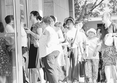 近日,市民在北京某郵局門口等待開門領取退休養老金。黃小兵攝(人民視覺)