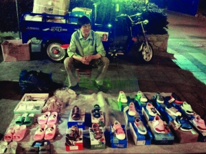 葛新峰在力寶廣場北側橋上擺攤 見習記者宋體佳攝