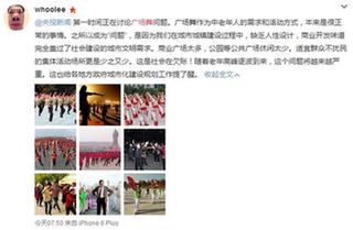 針對廣場舞,網友“whoolee”認為:商業廣場太多,公園等公共廣場休閑太少,適宜群眾不擾民的集體活動場所更是少之又少。