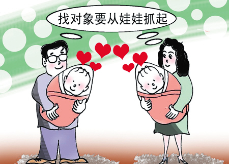 繼“不讓孩子輸在起跑線上”的口號之后,“不讓孩子輸在相親路上”的口號又橫空出世。在教育思想日漸超前的當(dāng)下,有媽媽能給不到一歲的女兒拉雙眼皮,就能有媽媽給“娃娃相親”,抑或是說,“娃娃相親”已不是什么新鮮事了。“給寶寶訂娃娃親,就是想擴大孩子的社交圈,讓孩子早日積累和異性相處的經(jīng)驗”,80后年輕父母深諳“獨一代”成長過程中社交能力的缺失、內(nèi)在的孤獨,不想讓自己的寶寶再重蹈自己成長中的失誤,便提前打算,給寶寶交友相親。