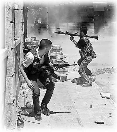 “敘利亞自由軍”向政府軍發射火箭推進式榴彈