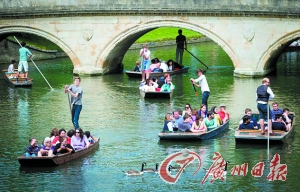 本報訊 據統計,目前劍橋康河上總共有260艘游船在運營,撐一艘12人的平底游船,1小時可帶來150英鎊的收入。