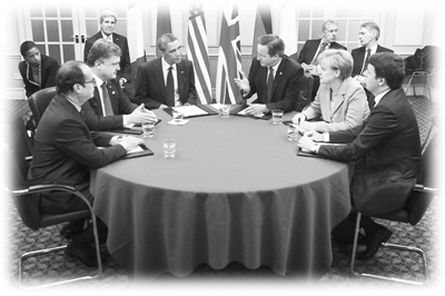 9月4日,在英國威爾士紐波特市,(從左至右)法國總統(tǒng)奧朗德、烏克蘭總統(tǒng)波羅申科、美國總統(tǒng)奧巴馬、英國首相卡梅倫、德國總理默克爾、意大利總理倫齊開會討論烏克蘭局勢。(新華社/ 法新)