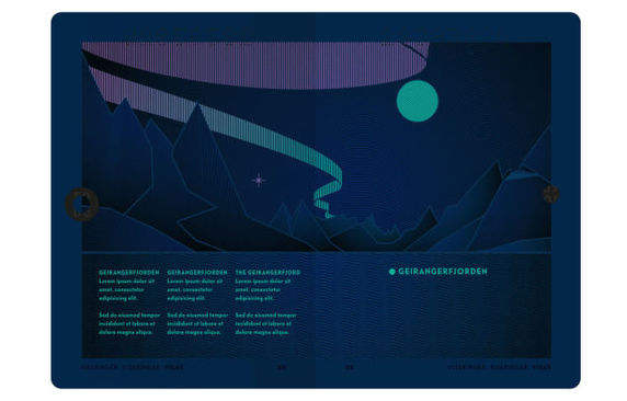翻開后,我們會發現,設計非常簡明干凈,主體是峽灣的形象。