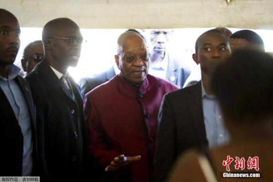 圖為當地時間4月18日,南非德班,南非總統祖馬緊急取消赴印尼活動,轉而到此次騷亂事件最嚴重的德班探視被困的外國難民。祖馬說,外國移民對南非經濟發展作出貢獻,帶來了南非所需的技術,不應全都被打上“犯罪分子”的烙印。