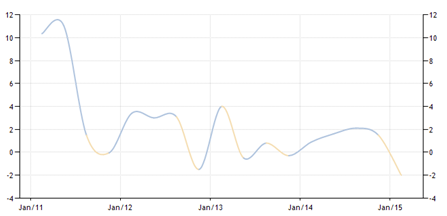 (白俄羅斯2011年1月-2015年1月GDP增長曲線圖)