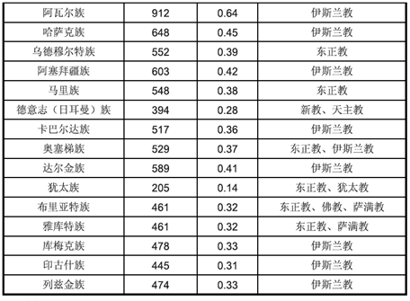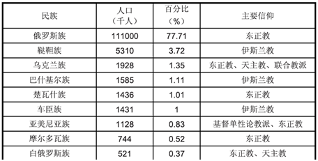 表1:俄羅斯的主要民族和宗教(2010年統(tǒng)計數(shù)據(jù))