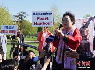 韓裔組織華盛頓慰安婦問題聯盟4月曾在華盛頓舉行記者會,要求安倍訪美時就慰安婦問題進行真誠、直接的道歉,而不是擺出無辜旁觀者的姿態。87歲的慰安婦受害者李容洙表示,她愿意以歷史見證者的身份站在安倍面前,要求他為這段歷史道歉。