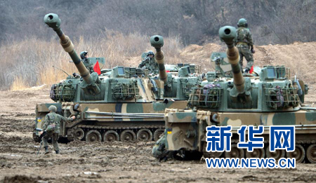 3月7日的美韓軍演中,韓軍投入K9自主炮進(jìn)行演習(xí)。新華社發(fā)
