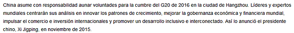 在歐洲,一些國家不斷遭受恐怖襲擊,西班牙組建了臨時政府,英國脫歐;在拉美,巴西試圖通過罷免其總統(tǒng)來克服一系列政府丑聞的負面影響,委內(nèi)瑞拉的經(jīng)濟幾近崩潰。在這樣的背景下,輪到中國來證明其提議在新的世界秩序中的可行性。這樣的背景也要求各國根據(jù)人民的力量和政府的民主能力做出改變。
