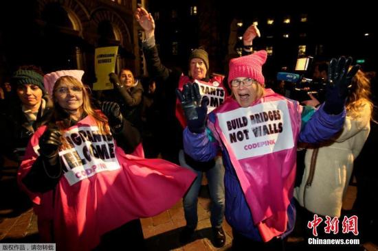 當地時間2017年2月3日,美國華盛頓,當地爆發大規模反特朗普游行。