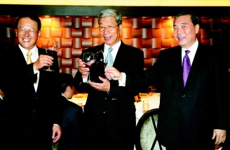 臺灣貿易協會宴請赴臺大陸采購團,臺灣方面熱情招待李水林(中間)一行。(圖片來源:臺灣《聯合報》)
