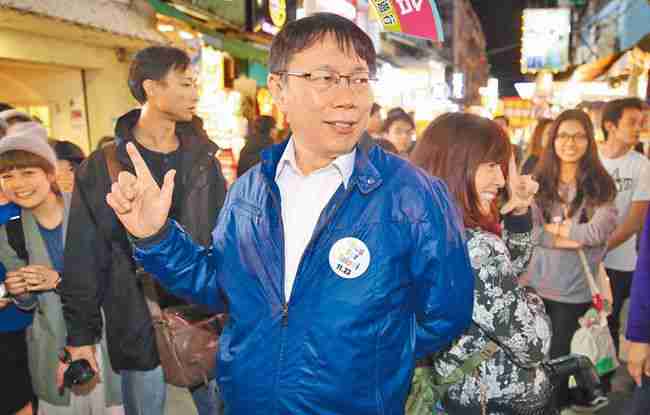 無黨籍臺(tái)北市長候選人柯文哲27日到蔣渭水銅像前發(fā)表演說。(圖片來源:臺(tái)媒)