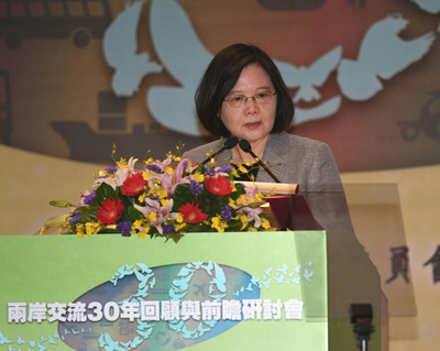 蔡英文出席紀(jì)念兩岸交流三十周研討會(huì)(圖片來(lái)源:中央網(wǎng)絡(luò)報(bào))