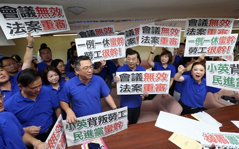 日前民進黨“立委”不顧勞團強烈反對,強行在一片混亂中通過“一例一休”修改草案初審,最快下月在臺灣“立法院”表決。民進黨“立委”的蠻橫行徑引起公憤,勞團聲言要在明年的地方選舉中制裁民進黨。去年民進黨當局硬推“一例一休”上路,結果民怨四起,不得不作出部分修改,但不僅未能平息坊間怒氣,反而又引發新一輪爭議。“一例一休”已經成為蔡英文當局揮之不去的夢魘。