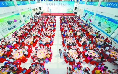 第七屆海峽論壇期間,來自海峽兩岸的近700名村里長齊聚平潭,圍著圓桌交流經驗。 林映樹 王鳳山 攝
