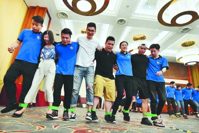 第九屆海峽論壇期間,兩岸青年在趣味競賽上齊心協作,奮力拼搏。本報記者 林輝 攝