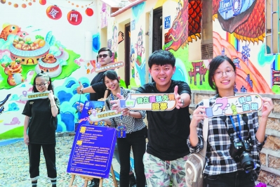 第十屆海峽論壇期間,參加首屆創意涂鴉大獎賽的臺灣團隊在作品前合影。本報記者 林熙 攝
