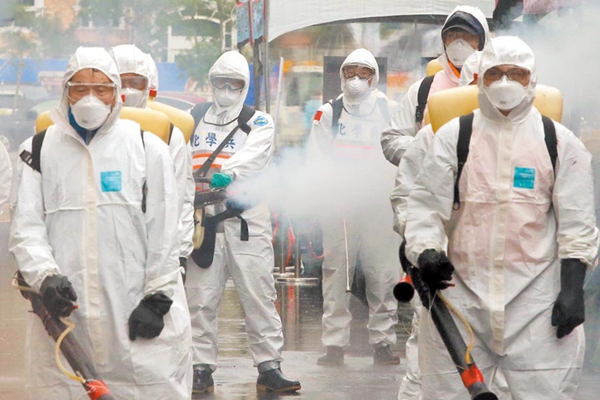 島內“化學兵”和消毒人員進行大范圍環境消毒作業。(圖片來源:臺灣“中時電子報”)