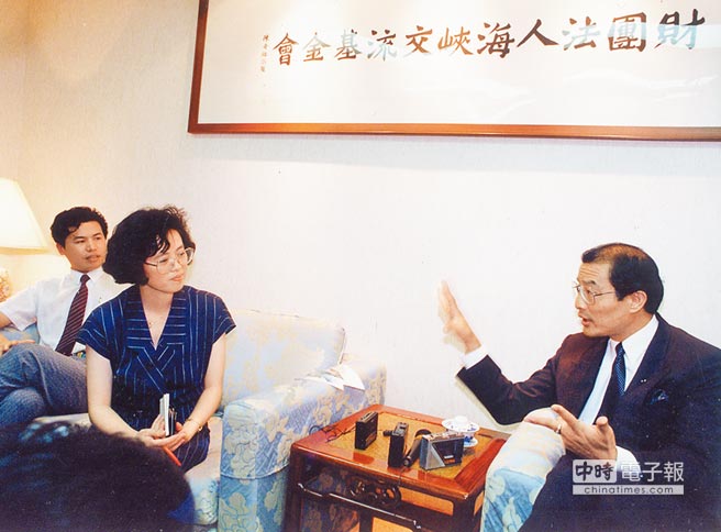 1991年8月12日,時任新華社記者的范麗青和中新社記者郭偉鋒為采訪閩獅漁號漁船糾紛案,隨同大陸紅十字會代表抵臺,當時臺灣方面紅會負責人陳長文向范麗青說,“你們的一小步,是兩岸關系的一大步。”(圖片來源:臺灣“中時電子報”)