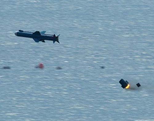 圖片說(shuō)明:臺(tái)軍雄風(fēng)IIE反艦導(dǎo)彈飛行中拋掉二級(jí)發(fā)動(dòng)機(jī)(資料)