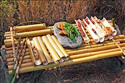 野外有了舒適的住所,吃飯也不能太隨便!吧唢灐笔翘貞鸩筷牭恼信撇,把面粉加糖后拉成條狀,纏在竹桿上烘烤后就能吃了,石板加熱就成為烹調的平臺,舉凡香腸、雞腿、雞翅與山蘇都能煮熟,隨便煮都是香味四溢,只是煙霧太大,戰時可能會暴露行蹤。