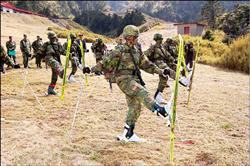 中新網3月22日電 臺軍陸軍航特部位于合歡山的武嶺寒訓中心是島內海拔最高的軍事基地,山寒訓與雪訓專業任務都在此處進行,由于基地海拔超過3000米,特戰官兵要克服空氣稀薄的環境,還要進行激烈的體能訓練。