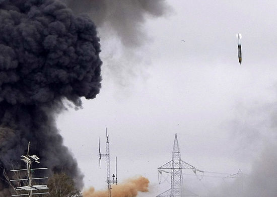 北約空襲利比亞的炸彈落向地面瞬間
