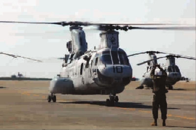 在演習中支援美軍第31遠征隊的CH-46E“海上騎士”運輸直升機