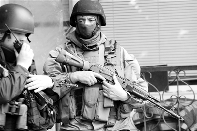 5月5日,在烏克蘭東部城市斯拉維揚斯克附近,烏克蘭士兵在一處檢查站警戒。烏克蘭內政部稱,5月5日,烏克蘭士兵與親俄武裝發生交火,造成4名士兵死亡,30人受傷。新華社/法新